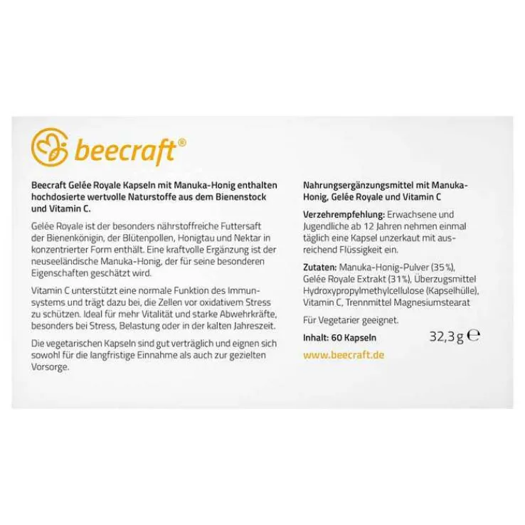 Beecraft Gelee Royale Kapseln mit Manuka-Honig, 60 St