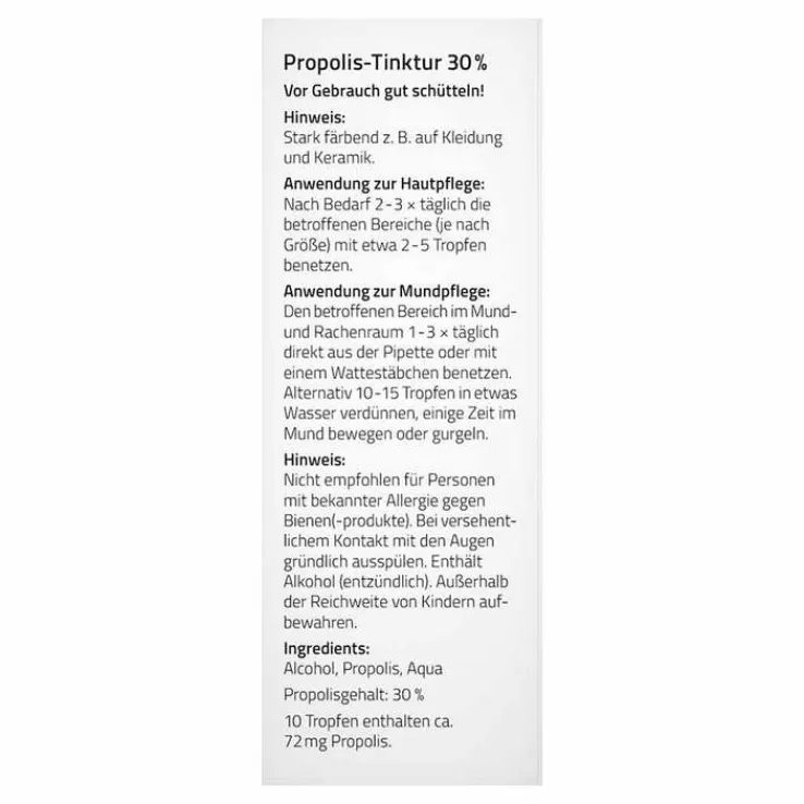 10 Tropfen enthalten ca. 72 mg Propolis.