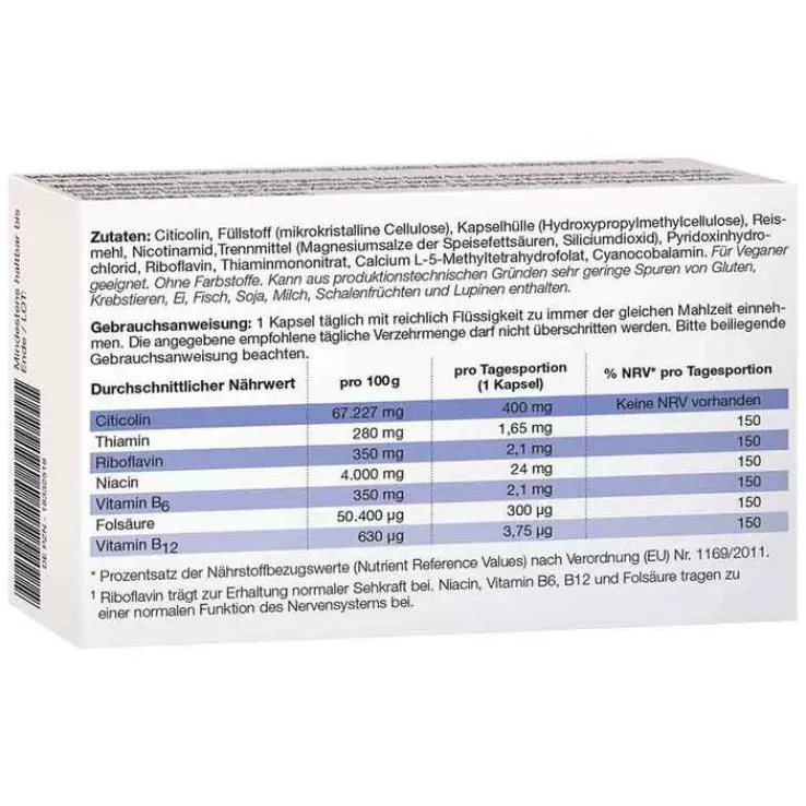 - Nahrungsergänzungsmittel mit Citicolin und 6 wichtigen B-Vitaminen