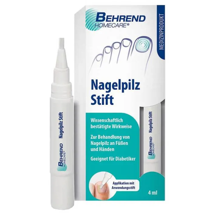 BEHREND HOMECARE® Nagelpilz Stift ist ein Medizinprodukt, das die Behandlung von Nagelpilz (Onychomycose) unterstützt. Sie hat sich bewährt und wirkt effektiv gegen Pilze, die Nagelpilz verursachen.