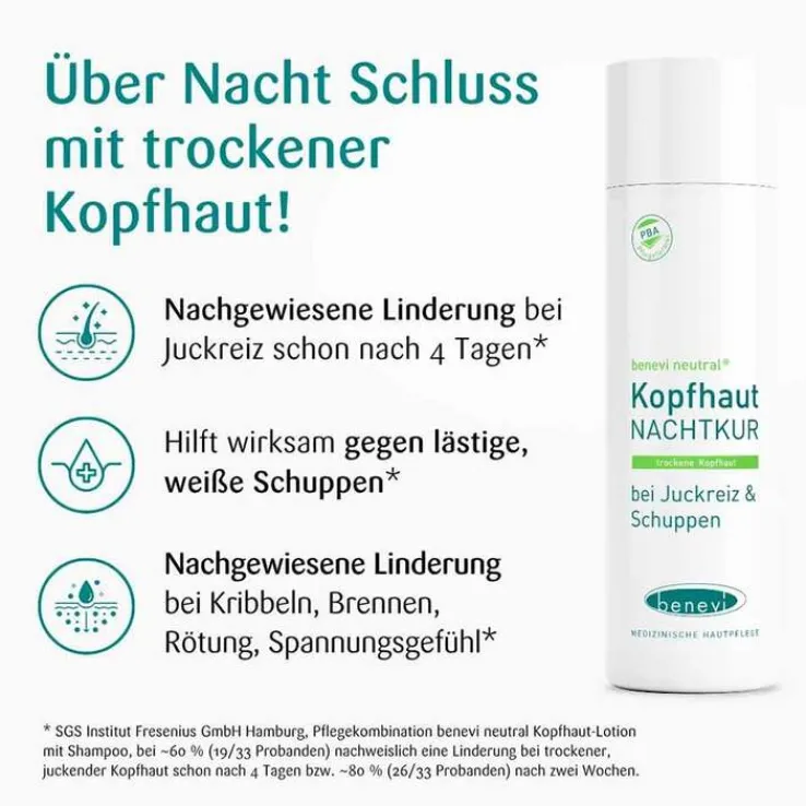 Die Benevi Neutral Kopfhaut-Nachtkur ist eine intensive Pflege bei trockener, juckender Kopfhaut.