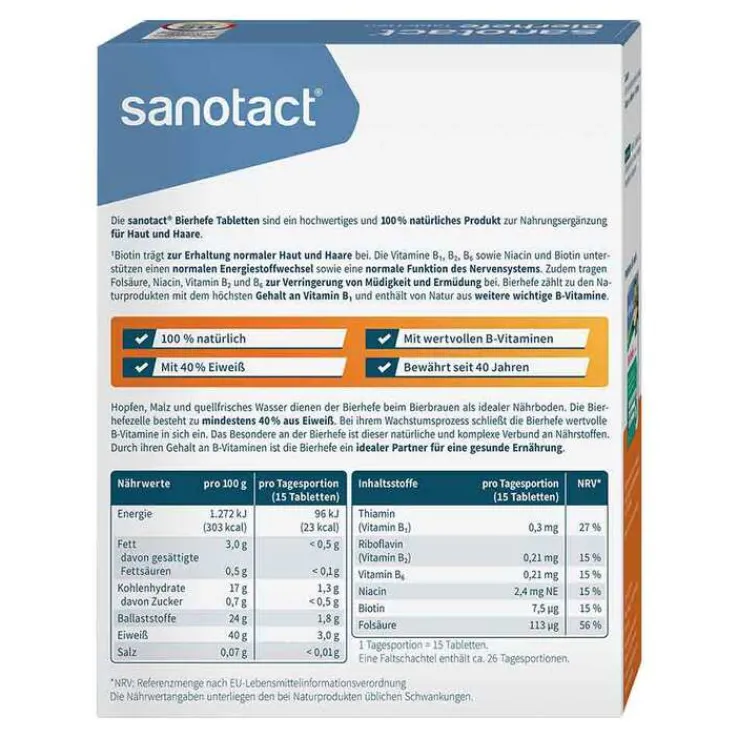 Die Bierhefetabletten sind ein echter Klassiker! Seit nun mehr als 35 Jahren werden die Bierhefetabletten von sanotact in Deutschland unter höchsten Qualitätsstandards hergestellt.