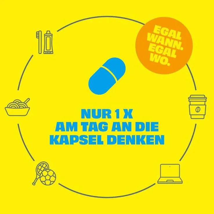 Alternativ können Sie die Kapsel auch öffnen und den Inhalt mit Flüssigkeit oder Joghurt einnehmen.