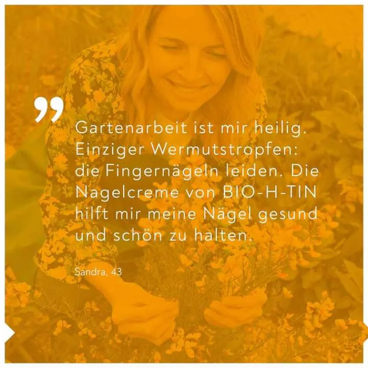 Die Bio-H-Tin regenerierende Nagelcreme unterstützt die Regeneration rissiger Nagelhaut, beugt dem Einreißen vor und schützt vor Hornhautbildung.