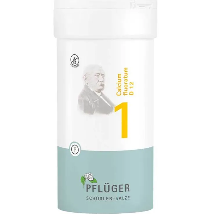 Biochemie Pflüger® Nr. 1 Calcium fluoratum D12, Zusammensetzung: 1 Tablette enthält: Wirkstoff: Calcium fluoratum Trit. D12 250 mg. Sonstige Bestandteile: Calciumbehenat (DAB), Kartoffelstärke. Registriertes homöopathisches Arzneimittel, daher ohne Angabe einer therapeutischen Indikation. Gegenanzeigen/Nebenwirkungen: keine bekannt. Enthält Lactose. Packungsbeilage beachten. Zu Risiken und Nebenwirkungen lesen Sie die Packungsbeilage und fragen Sie Ihre Ärztin, Ihren Arzt oder in Ihrer Apotheke. Homöopathisches Laboratorium Alexander Pflüger GmbH & Co. KG, 33378 Rheda-Wiedenbrück | [email protected] | www.pflueger.de