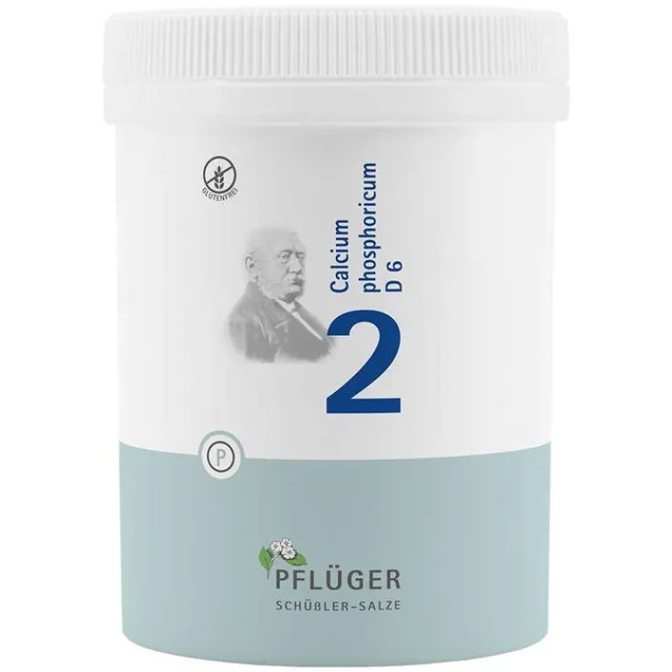 Biochemie Pflüger® Nr. 2 Calcium phosphoricum D6 Zusammensetzung: 1 Tablette enthält: Wirkstoff: Calcium phosphoricum Trit. D6 250 mg. Sonstige Bestandteile: Calciumbehenat (DAB), Kartoffelstärke. Registriertes homöopathisches Arzneimittel, daher ohne Angabe einer therapeutischen Indikation. Gegenanzeigen/Nebenwirkungen: keine bekannt. Enthält Lactose. Packungsbeilage beachten. Zu Risiken und Nebenwirkungen lesen Sie die Packungsbeilage und fragen Sie Ihre Ärztin, Ihren Arzt oder in Ihrer Apotheke. Homöopathisches Laboratorium Alexander Pflüger GmbH & Co. KG · 33378 Rheda-Wiedenbrück · [email protected] · www.pflueger.de