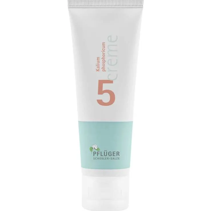 Biochemie Pflüger® Creme Nr. 5 Kalium phosphoricum. Wirkstoff: Kalium phosphoricum Trit. D4. egistriertes homöopathisches Arzneimittel, daher ohne Angabe einer therapeutischen Indikation. Gegenanzeigen: Überempfindlichkeit (Allergie) gegen den Wirkstoff oder einen der sonstigen Bestandteile, Anwendung im und am Auge, Anwendung auf den Schleimhäuten, Anwendung auf geschädigter Haut, Kinder unter 4 Jahren. Nebenwirkungen: keine bekannt. Creme enthält Propylenglycol und Cetylstearylalkohol. Packungsbeilage beachten. Zu Risiken und Nebenwirkungen lesen Sie die Packungsbeilage und fragen Sie Ihre Ärztin, Ihren Arzt oder in Ihrer Apotheke. Homöopathisches Laboratorium Alexander Pflüger GmbH & Co. KG · 33378 Rheda-Wiedenbrück · [email protected] · www.pflueger.de