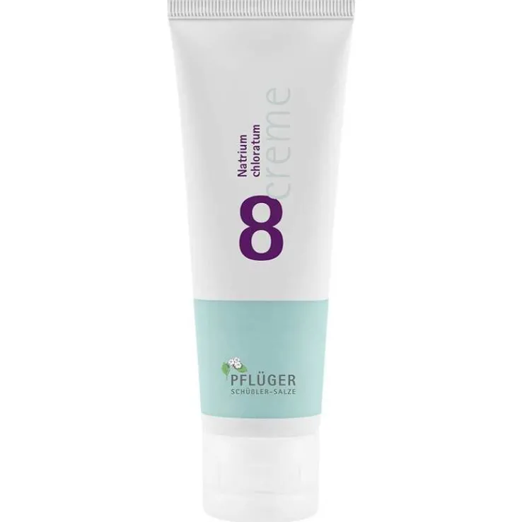 Biochemie Pflüger® Creme Nr. 8 Natrium chloratum.Registriertes homöopathisches Arzneimittel, daher ohne Angabe einer therapeutischen Indikation. Gegenanzeigen: Überempfindlichkeit (Allergie) gegen den Wirkstoff oder einen der sonstigen Bestandteile, Anwendung im und am Auge, Anwendung auf den Schleimhäuten, Anwendung auf geschädigter Haut, Kinder unter 4 Jahren. Nebenwirkungen: keine bekannt. Creme enthält Propylenglycol und Cetylstearylalkohol. Packungsbeilage beachten. Zu Risiken und Nebenwirkungen lesen Sie die Packungsbeilage und fragen Sie Ihre Ärztin, Ihren Arzt oder in Ihrer Apotheke. Homöopathisches Laboratorium Alexander Pflüger GmbH & Co. KG · 33378 Rheda-Wiedenbrück · [email protected] · www.pflueger.de