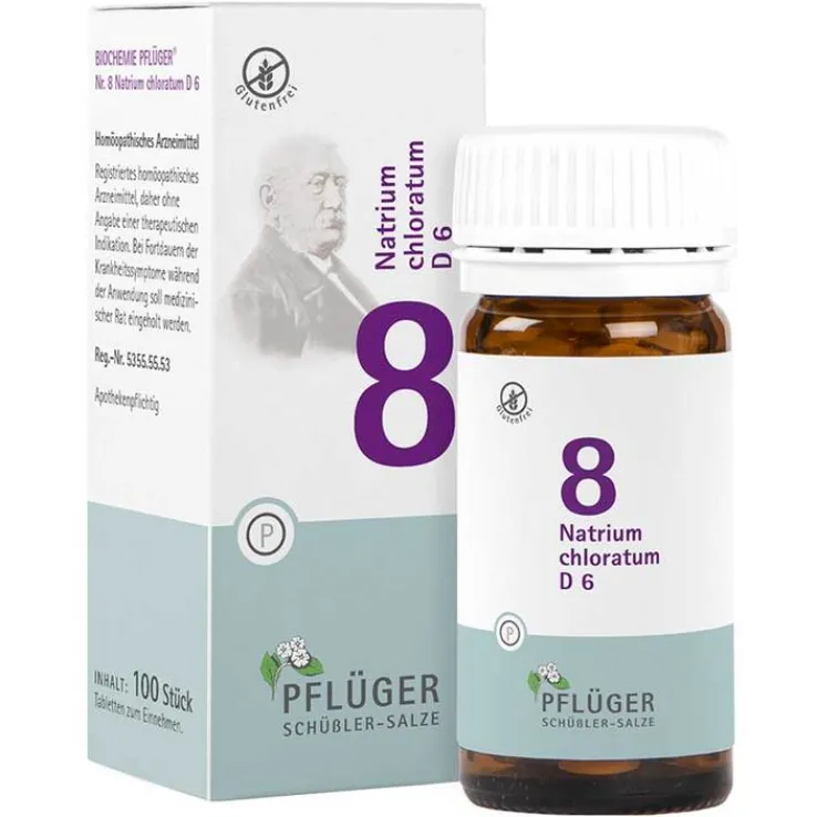 Biochemie Pflüger® Nr. Natrium chloratum D 6 , Zusammensetzung: 1 Tablette enthält: Wirkstoff: Natrium chloratum D 6 Trit. 250 mg. Sonstige Bestandteile: Calciumbehenat (DAB), Kartoffelstärke. Registriertes homöopathisches Arzneimittel, daher ohne Angabe einer therapeutischen Indikation. Gegenanzeigen/Nebenwirkungen: keine bekannt. Enthält Lactose. Packungsbeilage beachten. Zu Risiken und Nebenwirkungen lesen Sie die Packungsbeilage und fragen Sie Ihre Ärztin, Ihren Arzt oder in Ihrer Apotheke. Homöopathisches Laboratorium Alexander Pflüger GmbH & Co. KG, 33378 Rheda-Wiedenbrück | [email protected] | www.pflueger.de