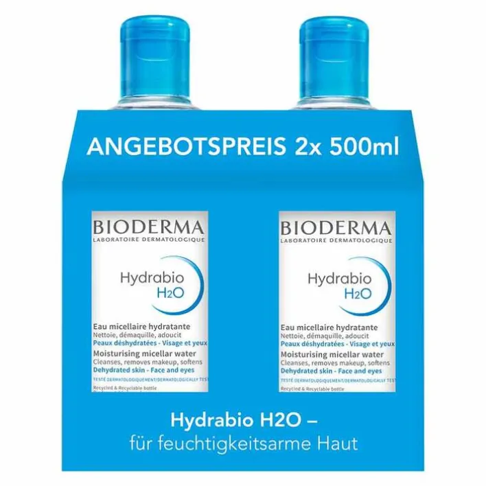 Bioderma Hydrabio H2O Mizellen-Reinigungslösung für feuchtigkeitsarme Haut, 2X500 ml> Trockene Haut|Reinigung