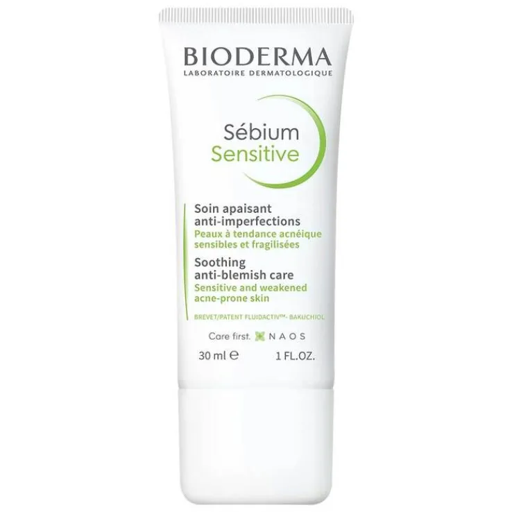 Sebium Sensitive ist eine beruhigende Pflege, die an der Ursache von Empfindlichkeit und Unreinheiten von zu Akne neigender Haut ansetzt. Sie spendet Feuchtigkeit und reduziert Pickel und Rötungen. Besonders therapiebegleitend geeignet. Die Creme ist nicht komedogen und eignet sich auch gut als Make-up-Unterlage.