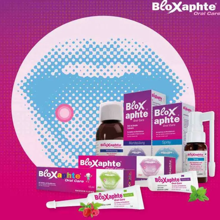 Zahnspangenträger oder Gebissträger leiden durch die Reibung der Hilfsmittel verstärkt an gereiztem Zahnfleisch, an dessen wunden Stellen sich stark brennende Aphthen bilden können. Das BloXaphte® Oral Care Spray ist eine optimale Lösung zur Schmerzlinderung und gezielten Vorbeugung.