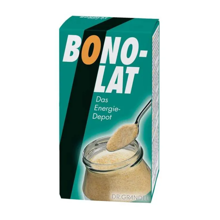 Verwendung von BONOLAT: Zur Kräftigung und als Aufbaukost nimmt man täglich 3 gehäufte Esslöffel BONOLAT zusätzlich zur gewohnten Nahrung. Das feine BONOLAT-Pulver lässt sich mit Flüssigkeiten aller Art (Frucht- und Gemüsesäften, Milch, Kaffee, Kakao, Wasser) schnell in ein Getränk verwandeln. BONOLAT kann auch trocken gegessen oder Müslis, Sauermilchprodukten und Süßspeisen vieler Art beigemischt werden.