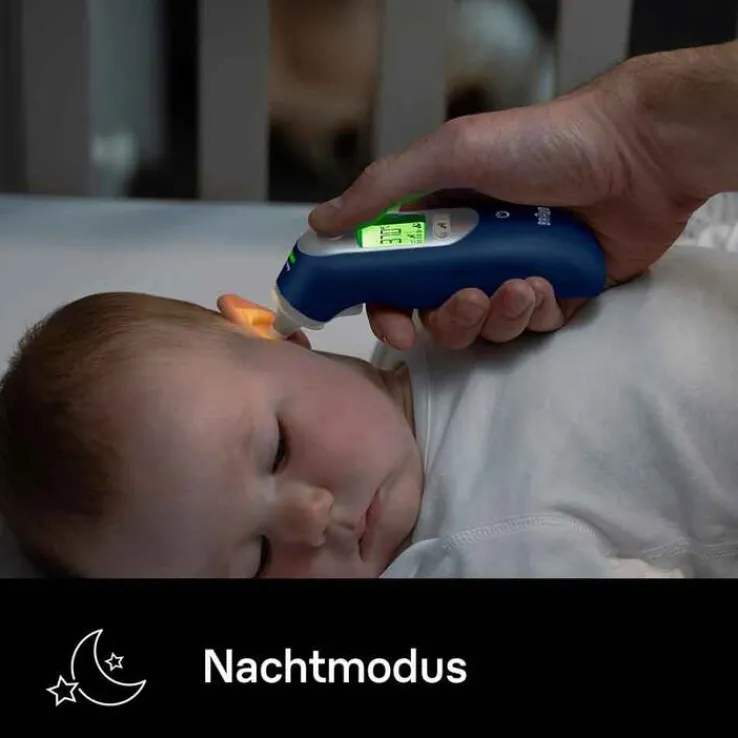 Das Braun ThermoScan® 7+ connect Ohrthermometer verfügt über die ExacTemp® Stabilitätsanzeige, die mit einem Licht und einem Signalton anzeigt, wenn das Gerät stabil im Ohr sitzt, sowie über eine vorgewärmte Spitze für verbesserte Genauigkeit und einen Nachtmodus. Für optimale Verwendung sind 21 Hygiene cap im Lieferumfang enthalten, um die Linse sauber und frei von Behinderungen zu halten. Es ist sanft genug für Babys und einfach für die ganze Familie anzuwenden.