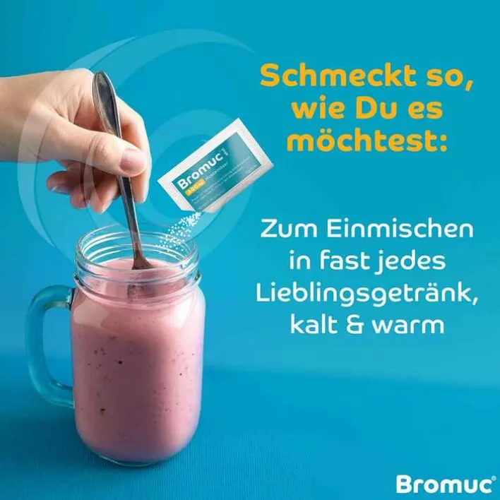 Sie können Bromuc® in beinahe jedes Getränk einmischen – ganz gleich, ob in heißen Tee, Ihren Lieblings-Fruchtsaft, Smoothie oder einem anderen Getränk Ihrer Wahl.