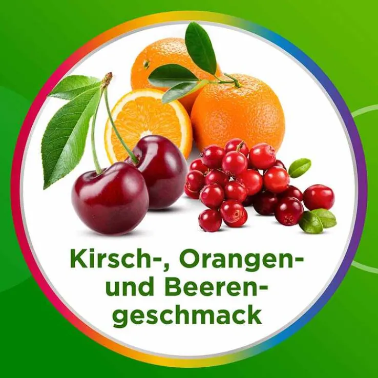 - Mit Kirsch-, Orangen- und Beerengeschmack