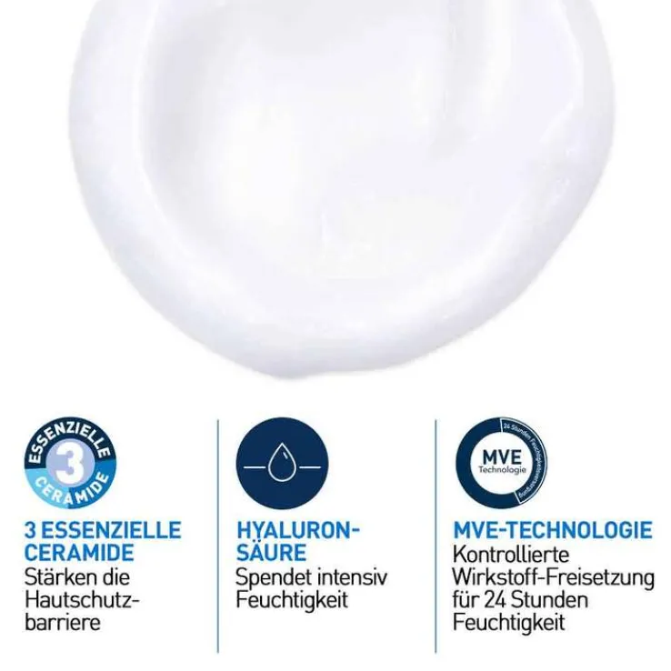 Die Augenpartie aussparen und bei Kontakt mit den Augen diese umgehend gründlich ausspülen. Die mit Dermatologen entwickelte Reinigungscreme eignet sich dank ihrer sanften Formel für die tägliche Anwendung. Noch bessere Ergebnisse erzielt sie in Kombination mit der (PZN 14017642) CeraVe Feuchtigkeitscreme.