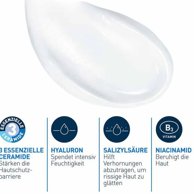 AQUA / WATER • GLYCERIN • PARAFFINUM LIQUIDUM / MINERAL OIL • GLYCERYL STEARATE SE • CETEARYL ALCOHOL • NIACINAMIDE • CETYL ALCOHOL • AMMONIUM LACTATE • TRIETHANOLAMINE • SALICYLIC ACID • BEHENTRIMONIUM METHOSULFATE • PEG-100 STEARATE • CERAMIDE AP • CERAMIDE EOP • CERAMIDE NP • CARBOMER • DIMETHICONE • SODIUM HYALURONATE • SODIUM LAUROYL LACTYLATE • CHOLESTEROL • DISODIUM EDTA • XANTHAN GUM • PHYTOSPHINGOSINE • ETHYLHEXYLGLYCERIN • PHENOXYETHANOL (F.I.L. D215078/1).