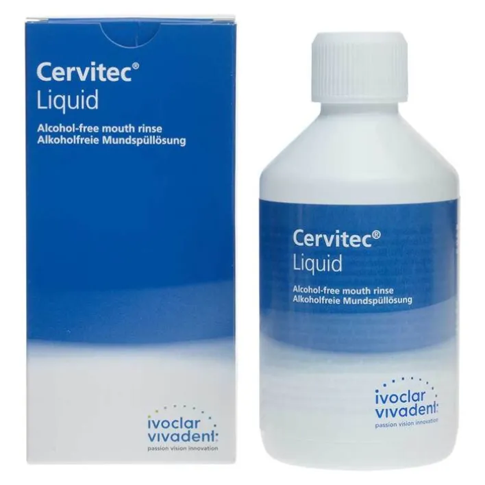 Cervitec Liquid ist eine gebrauchsfertige Mundspüllösung ohne Alkohol mit Xylit, Panthenol und 0.1% Chlorhexidin Digluconat.