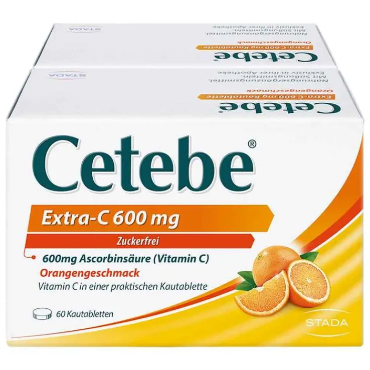 Eine Kautablette Cetebe Extra-C 600 mg enthält 600 mg Vitamin C.