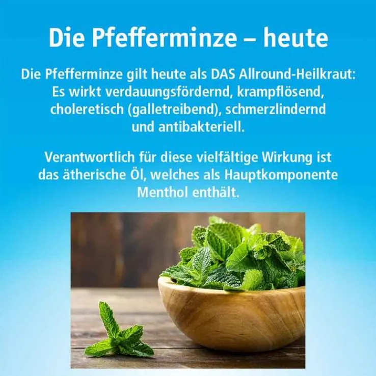 - 100 % reines pflanzliches Pfefferminzöl zur Inhalation, Einnahme und äußerlichen Anwendung