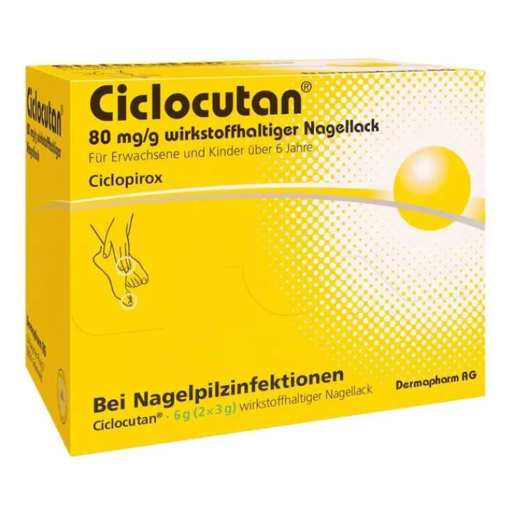 Ciclocutan® 80 mg/ g wirkstoffhaltiger Nagellack Wirkstoff: Ciclopirox. Anwendungsgebiet: Zur lokalen Anwendung gegen Nagelpilzinfektionen. Warnhinweis: Kontakt mit Augen und Schleimhäuten vermeiden. Zu Risiken und Nebenwirkungen lesen Sie die Packungsbeilage und fragen Sie Ihre Ärztin, Ihren Arzt oder in Ihrer Apotheke. Stand: 06/2018.