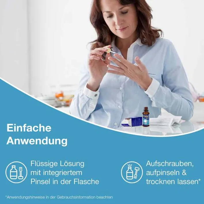 Die Lösung ist einfach anzuwenden und kann mit dem integrierten Pinsel direkt auf die Warze aufgetragen werden. Das wird so lange wiederholt, bis die Warze abgetragen ist oder abfällt.