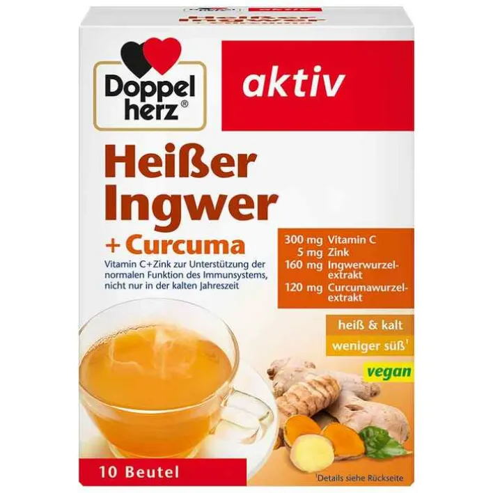 Unser Immunsystem ist Tag für Tag gefordert. Dies trifft nicht nur auf die kalte Jahreszeit zu. Heißer Ingwer + Curcuma von Doppelherz ist schnell zubereitet und schmeckt angenehm aromatisch. In der kalten Jahreszeit ist es als Heißgetränk ideal.