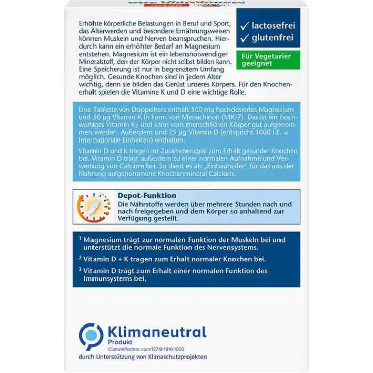 Doppelherz Magnesium 500 + D3 + K2 Depot Tabletten, 60 St