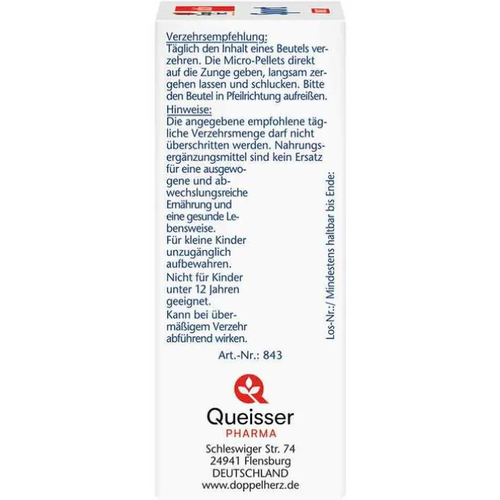 Täglich den Inhalt eines Beutels verzehren. Die Micro – Pellets direkt auf die Zunge geben, langsam zergehen lassen und schlucken.