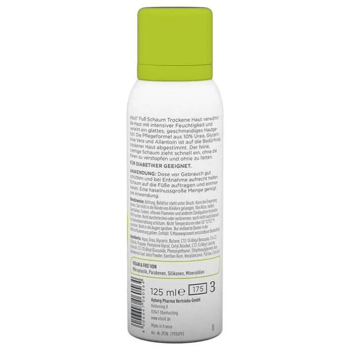 Efasit Fuß Schaum für trockene Haut ist speziell auf die Bedürfnisse trockener Füße abgestimmt. Mit 10% Urea, Glycerin, Aloe Vera und Allantoin wird der Fuß intensiv gepflegt. Es bleibt ein Gefühl weicher und geschmeidiger Haut. Der Fuß Schaum von Efasit spendet wohltuende Feuchtigkeit und zieht dank seiner Textur schnell ein, ohne zu fetten.