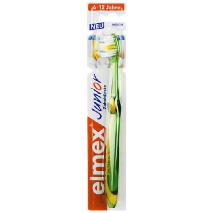 Dann sollten Sie die Elmex Junior Kinderzahnbürste ausprobieren. Diese weiche Zahnbürste wurde speziell für Kinder im Alter von 6 – 12 Jahren für ihre neuen bleibenden Zähne entwickelt.