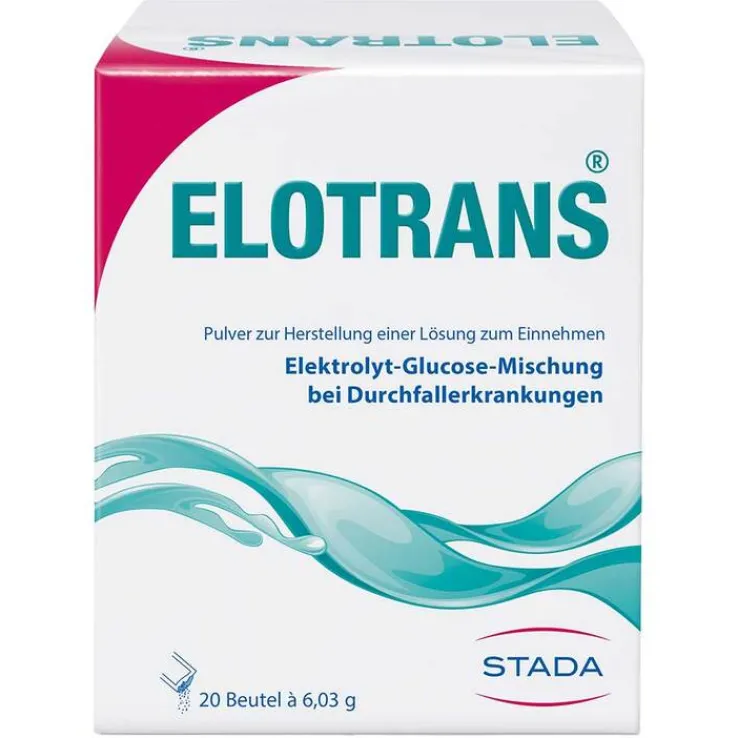 Bei Durchfällen ist eine ausreichende Flüssigkeits- und Elektrolytsubstitution die wichtigste therapeutische Maßnahme, um rasch das Allgemeinbefinden zu verbessern. In der oralen Rehydratationslösung Elotrans® ist das Verhältnis von Glukose zu Natrium so optimiert, dass eine maximale Natriumresorption und damit Wasseraufnahme erreicht wird. Elotrans liefert dem Körper Salze, Mineralstoffe und Glucose in der optimalen Zusammensetzung und unterstützt so die Regeneration.