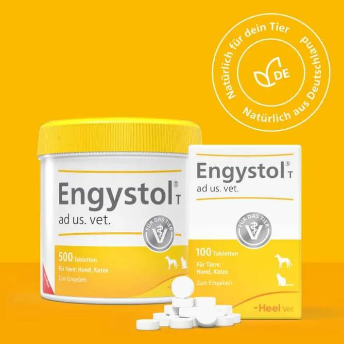 Engystol® T ad us. vet. Tabletten. Reg.-Nr.: 402677.00.00. Registriertes homöopathisches Arzneimittel, daher ohne Angabe einer therapeutischen Indikation. Wartezeit: Entfällt. Zu Risiken und Nebenwirkungen lesen Sie die Packungsbeilage und fragen Sie Ihren Tierarzt oder Apotheker. Biologische Heilmittel Heel GmbH, 76532 Baden-Baden, Juli 2020
