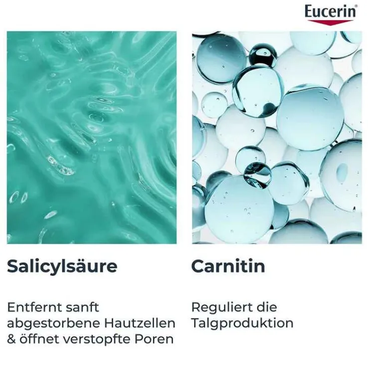 Augenkontakt vermeiden. Morgens, insbesondere bei längerer Sonneneinstrahlung, das Eucerin® Oil Control Face Sun Gel-Creme LSF 50+ verwenden. Für ein reines Hautbild können weitere Produkte aus der Eucerin® DermoPure Clinical Serie ergänzt werden.