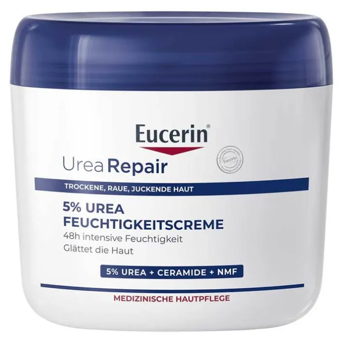 Die Eucerin UreaRepair Körpercreme 5 % ist eine feuchtigkeitsspendende Pflegecreme für sehr trockene Haut. Mit dieser Bodylotion werden häufig auftretende Anzeichen trockener Haut wie eine raue Oberfläche, Juckreiz und Spannungsgefühl gemildert. Mit ihrer cremigen Textur und den Inhaltsstoffen Urea sowie anderen natürlichen Feuchthaltefaktoren spendet die Hautpflege intensiv Feuchtigkeit und hilft dabei, dass die Wirkstoffe in der Haut gebunden werden.