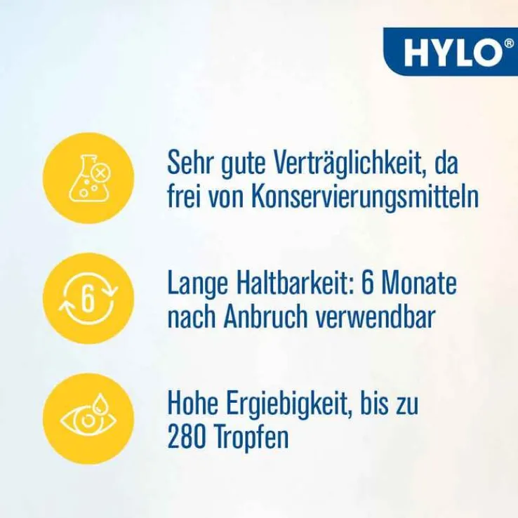 Die ersten wasserfreien Augentropfen sind sehr gut zur Linderung der Symptome des Trockenen Auges. Mit dem Inhaltsstoff Perfluorhexyloctan ersetzen sie nicht den wässrigen Teil des Tränenfilms, sondern legen sich wie ein Schutzmantel über ihn und können so einer vorzeitigen Verdunstung vorbeugen. Durch ihre besonderen Fließeigenschaften gibt es EvoTears® in einer praktischen Tropferflasche, in der auch ohne Konservierungsmittel keine Keime entstehen können. Dadurch sind sie gut verträglich und nach Anbruch 6 Monate haltbar.