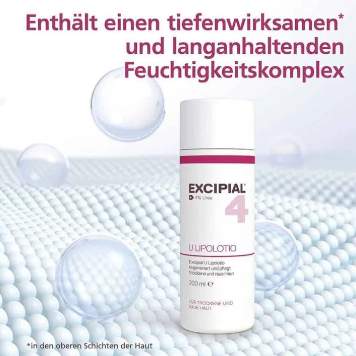 Lipophile, intensiv fettende Feuchthalte-Emulsion zur großflächigen Pflege trockener und rauer Haut. Excipial U Lipolotion normalisiert den Lipidgehalt trockener Haut und verhindert durch den natürlichen Moisturizer eine zu starke Austrocknung.