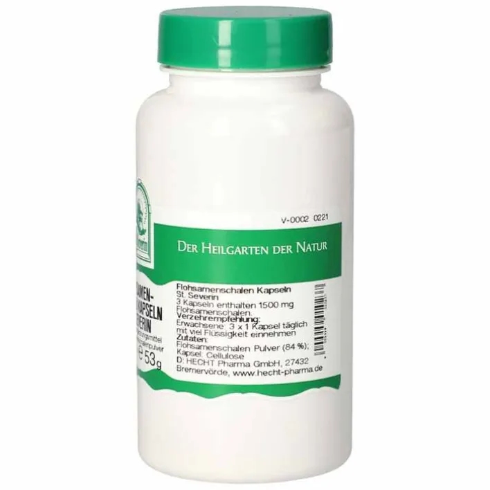 - 3 Kapseln enthalten 1500 mg Flohsamenschalen