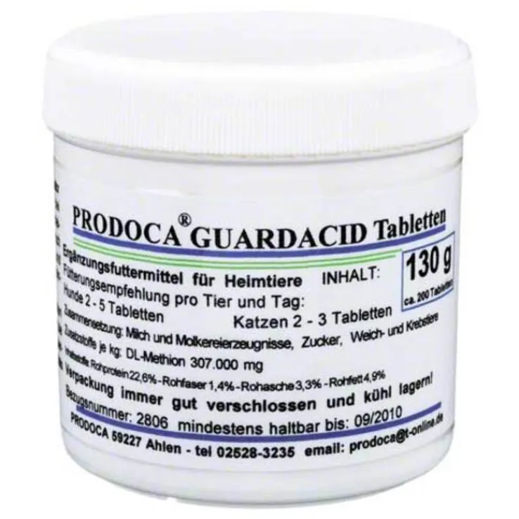 Guardacid-Tabletten werden bereits seit 1989 im Veterinärbereich als Ergänzungsfutter mit einem besonderen Ernährungszweck erfolgreich eingesetzt. Die Inhaltsstoffe wirken ansäuernd, regulierend und dienen der Prävention und zur Verringerung der Gefahr des Wiederauftretens von Struvitsteinen. Eine Anwendung von DL-Methionin bei Erkrankungen der unteren Harnwege bei Katzen, Felines Urologisches Syndrom (FUS), ist meist erfolgversprechend.