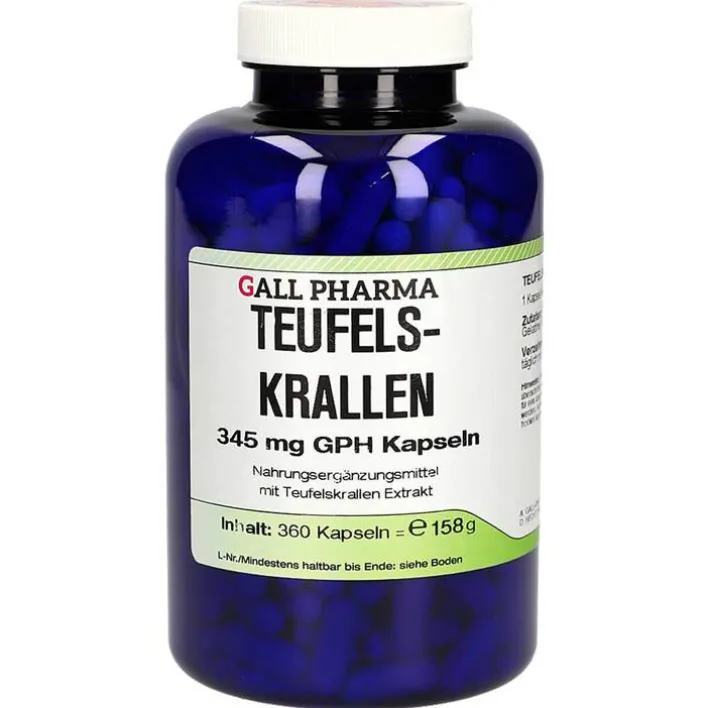 1 Kapsel enthält 345 mg Teufelskrallen Extrakt entsprechend 17,25 mg Harpagoside.