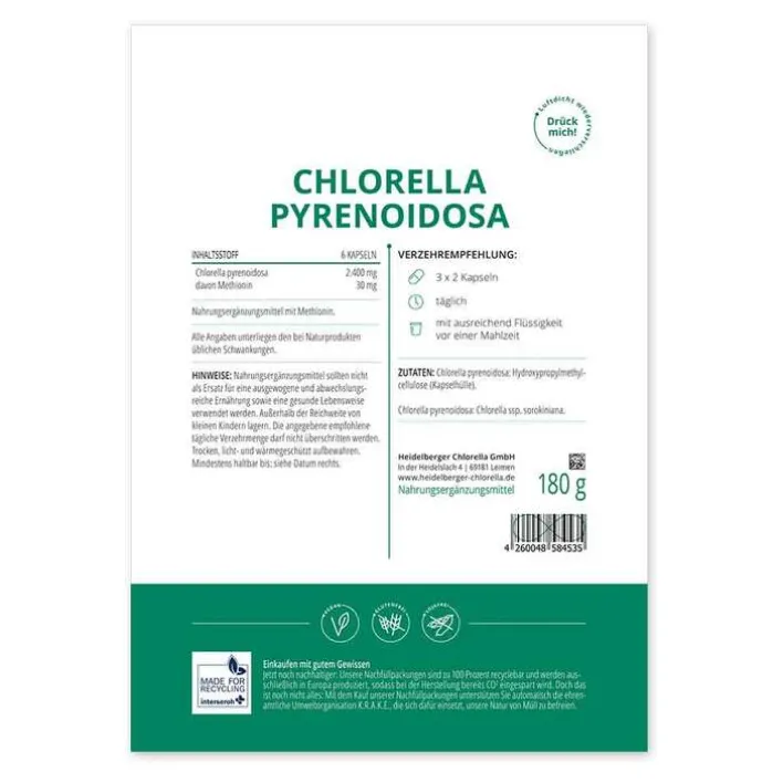 Heidelberger Chlorella Chlorella Pyrenoidosa Kapseln, 180 g> Chlorella