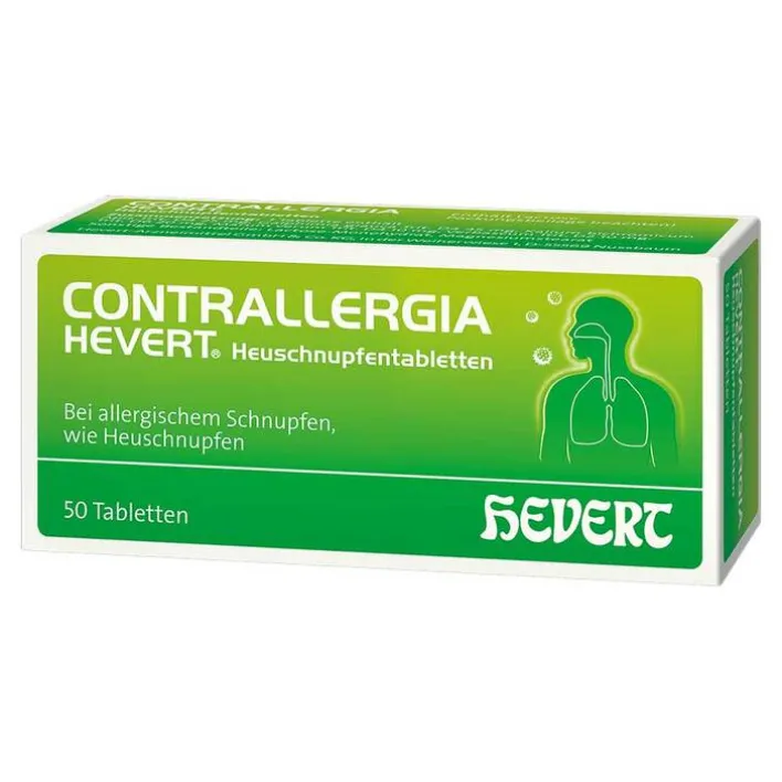 - Contrallergia Hevert® Heuschnupfentabletten wirken auf sanfte Weise antiallergisch. Sie lindern Beschwerden wie Juckreiz, Augenbrennen und Fließschnupfen.