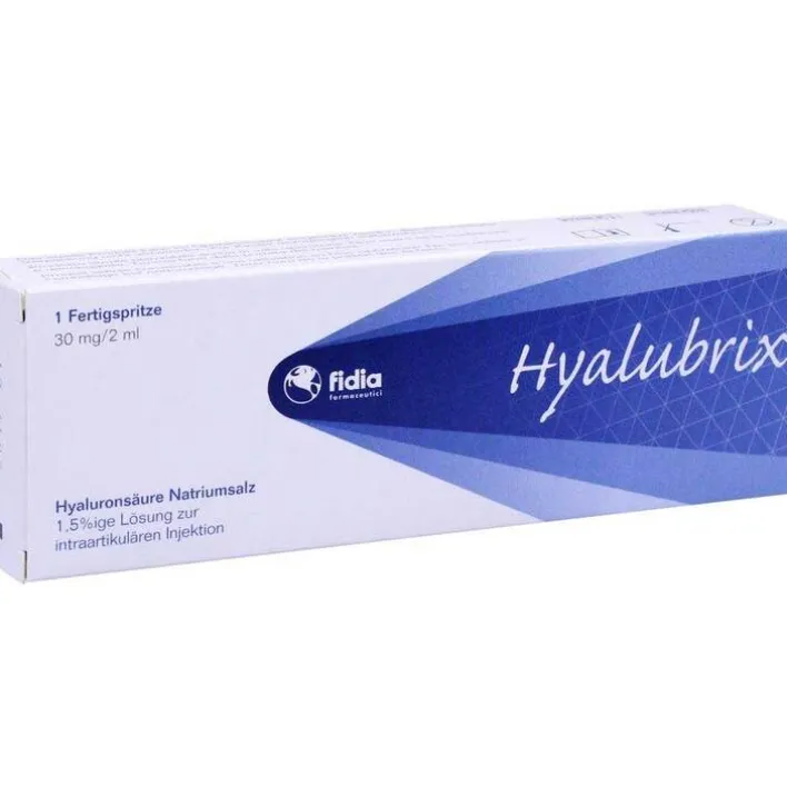 Die Bestandteile von Hyalubrix sind 1,5%ige Hyaluronsäure-Natriumsalz-Lösung mit 30mg Hyaluronsäure-Natriumsalz pro 2ml Fertigspritze.