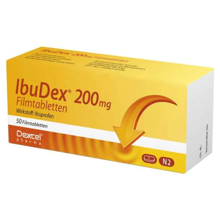 IbuDex® 200 mg Filmtabletten Wirkstoff: Ibuprofen. Anwendungsgebiete: Symptomatische Behandlung von leichten bis mäßig starken Schmerzen wie Kopf-, Zahn- u. Regelschmerzen; Fieber. Hinweis: Bei Schmerzen oder Fieber ohne ärztlichen Rat nicht länger anwenden als in der Packungsbeilage vorgegeben! Zu Risiken und Nebenwirkungen lesen Sie die Packungsbeilage und fragen Sie Ihre Ärztin, Ihren Arzt oder in Ihrer Apotheke.
