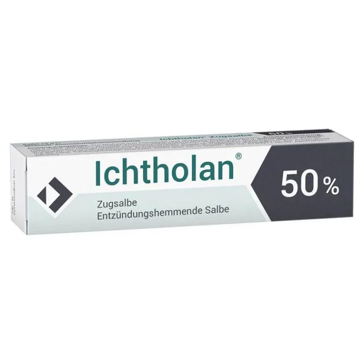 Ichtholan® Zugsalbe 50 % Wirkstoff: Ammoniumbituminosulfonat. Anwendungsgebiete: Zur Reifung von Furunkeln und abszedierenden Prozessen, z. B. Hautabszessen, Nagelbett-, Haarbalg-, Schweißdrüsen-Entzündungen, Entzündungen durch Splitter und Dornen. Salben enthalten Wollwachs und Butylhydroxytoluol. Zu Risiken und Nebenwirkungen lesen Sie die Packungsbeilage und fragen Sie Ihre Ärztin, Ihren Arzt oder in Ihrer Apotheke. Ichthyol-Gesellschaft Cordes, Hermanni & Co. (GmbH & Co.) KG, 22335 Hamburg