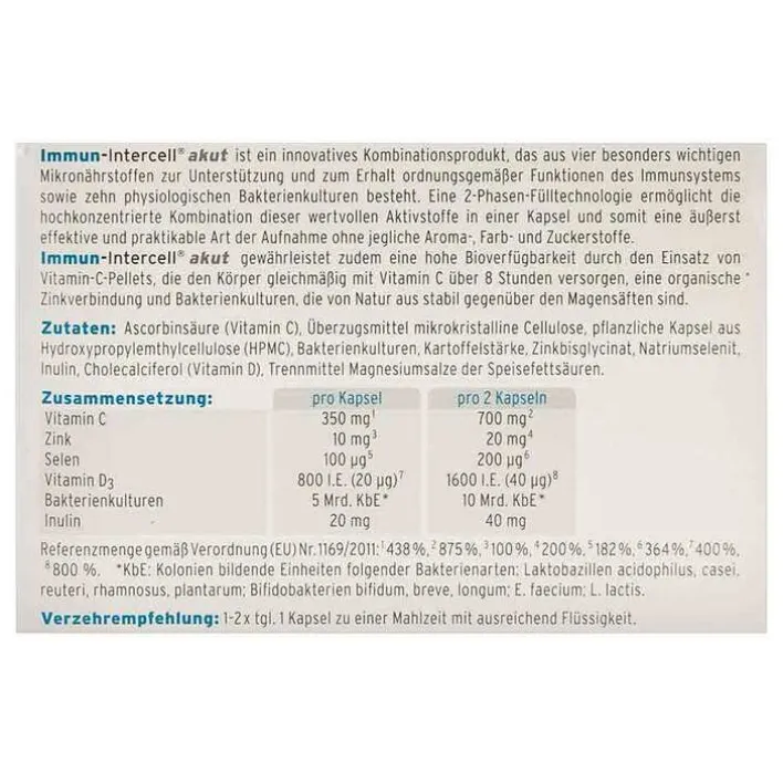 Immun Intercell akut Hartkapseln mit magensaftresistent überzogene Pell., 60 St> Immunsystem