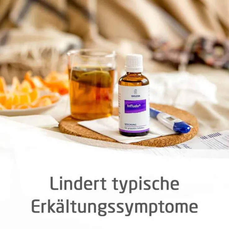 Wenn Sie Infludo® bei den ersten Erkältungsbeschwerden einnehmen, können Sie den Ausbruch der Erkrankung häufig noch verhindern oder abmildern. Ist die Erkältung da, unterstützt die Weleda-6-fach-Kombination aus Eisenhut, Zaunrübe, Eucalyptus, Wasserdost, Sabadilla und Phosphor die Selbstheilungskräfte und mindert die Symptome.
