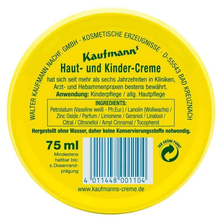 Kaufmanns Haut- und Kindercreme ist eine speziell entwickelte Pflegecreme für empfindliche Haut. Kaufmanns Haut- und Kindercreme hat sich in ärztlichen Praxen und Kliniken hervorragend bewährt.