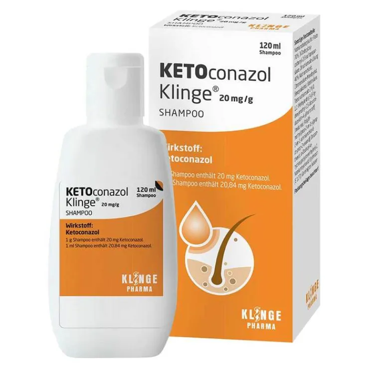 KETOconazol Klinge® 20 mg/g Shampoo: Anwendungsgebiet: Vorbeugung u. Behandlung v. Infektionen d. Kopfhaut, die v. dem Pilz Pityrosporum hervorgerufen werden, wie Seborrhoische Dermatitis (fettig-schuppende Entzündung der Kopfhaut u. anderer Hautregionen) od. Kopfschuppen (Pityriasis capitis). Warnhinweise: Kontakt m. Augen vermeiden. Nicht schlucken. Arzneimittel f. Kinder unzugängl. aufbewahren. Stand: 12/22-2. Zu Risiken und Nebenwirkungen lesen Sie die Packungsbeilage und fragen Sie Ihre Ärztin, Ihren Arzt oder in Ihrer Apotheke. Klinge Pharma GmbH, 83607 Holzkirchen, Deutschland